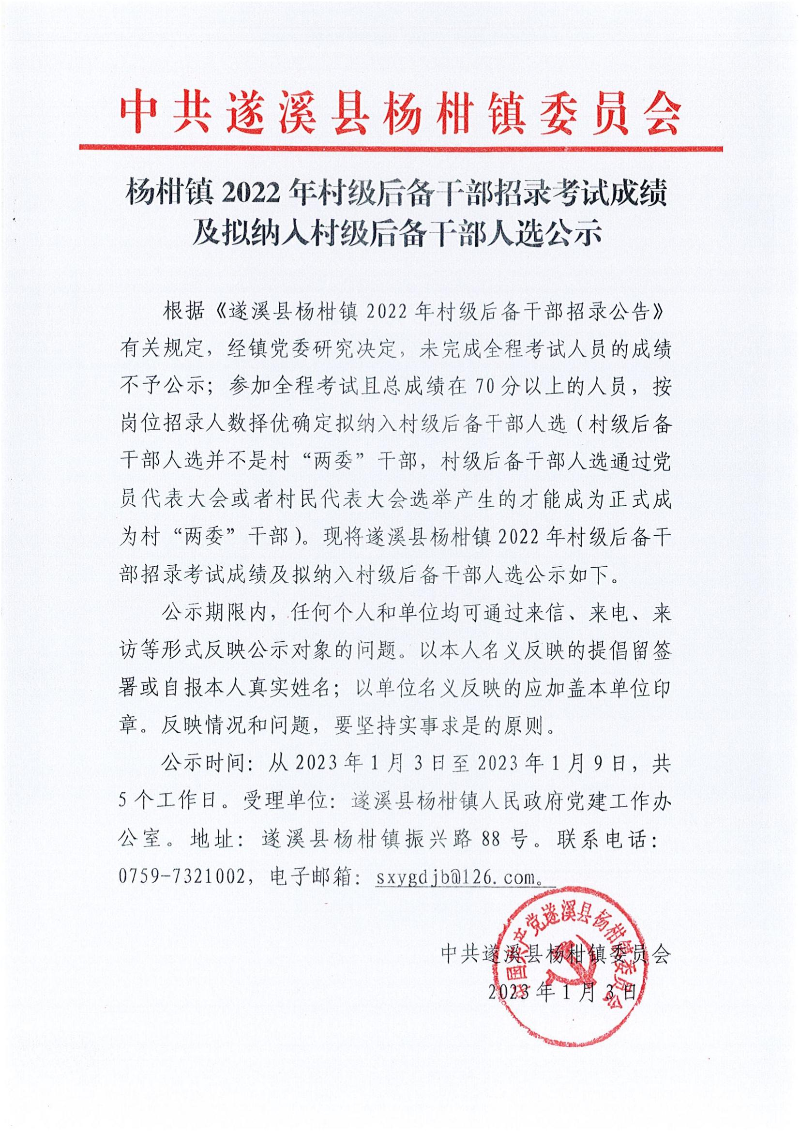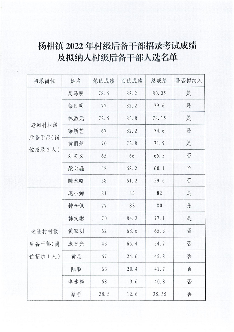 楊柑鎮(zhèn)2022年村級后備干部招錄考試成績及擬納入村級后備干部人選公示 | | 作者: | 來源:本網(wǎng) | 時(shí)間:2023-01-03 18:40:54 點(diǎn)擊數(shù):- 楊柑鎮(zhèn)2022年村級后備干部招錄考試成績及擬納入村級后備干部人選公示.pdf 【打印正文】