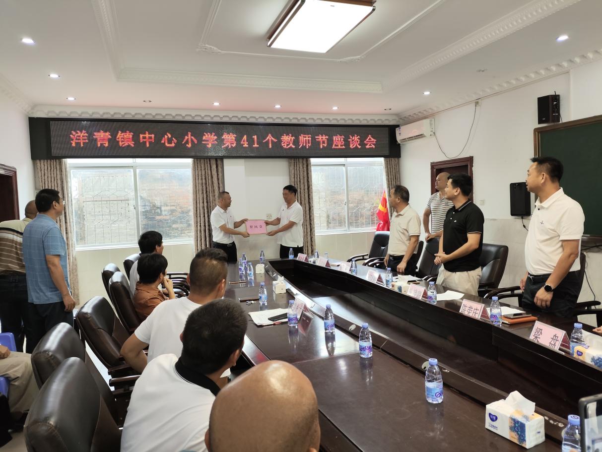 參觀過后召開教師節(jié)座談會,洋青鎮(zhèn)黨委書記陳榮慶主持會議。座談會上,朱凌靜聽取了洋青中心小學(xué)校長曹永才關(guān)于學(xué)校發(fā)展歷程、教育理念、特色建設(shè)、師生規(guī)模、學(xué)業(yè)成就、開學(xué)準備以及未來發(fā)展藍圖的詳細介紹。他代表縣委、縣政府向辛勤耕耘在教育一線的教師們表達了深切的關(guān)懷和節(jié)日的誠摯祝福,并代表慰問團為教師們送上慰問金。朱凌靜對教師們?yōu)橥苿拥胤浇逃聵I(yè)發(fā)展所付出的不懈努力與巨大貢獻致以誠摯謝意,并勉勵大家持續(xù)秉持愛崗敬業(yè)、無私奉獻的精神,堅守為黨育人、為國育才的崇高使命,注重德才兼?zhèn)?、深化學(xué)術(shù)研究、勇于創(chuàng)新實踐,克服一切艱難險阻,不斷提升個人的專業(yè)素養(yǎng)與教學(xué)能力,致力于成為學(xué)生全面發(fā)展的引路人,為國家培育更多棟梁之材。