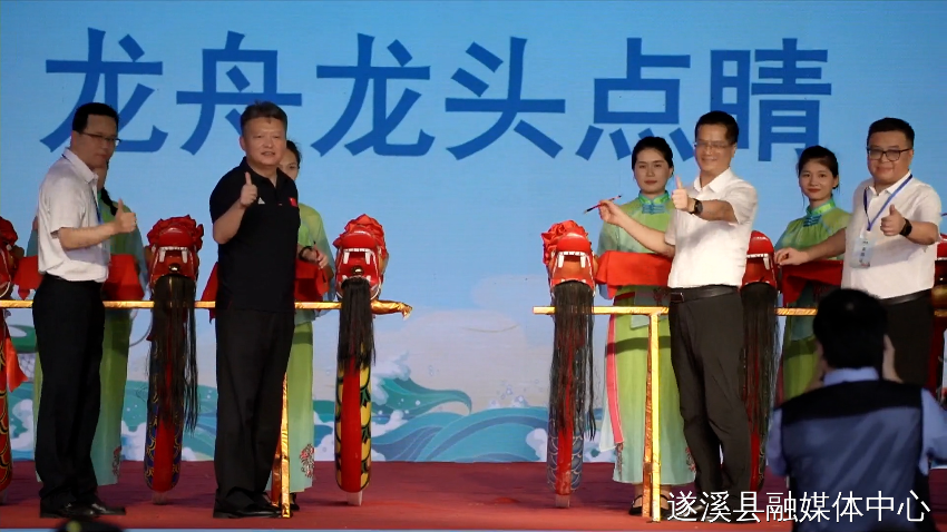 出席活動的領(lǐng)導(dǎo)嘉賓共同啟動2024年遂溪·環(huán)北部灣(江洪)龍舟文化季系列活動,并為龍舟龍頭點睛。