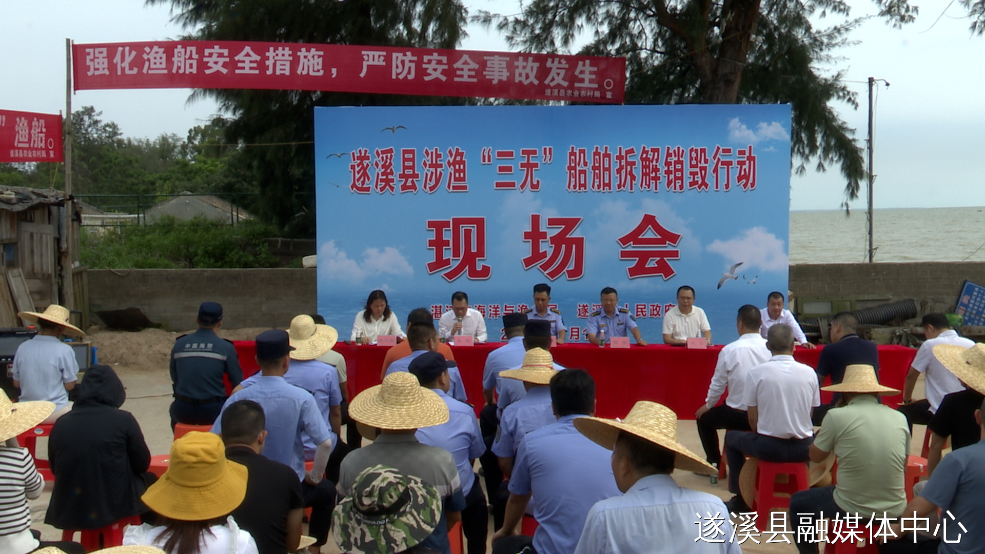 7月10日下午,遂溪縣在草潭鎮(zhèn)召開涉漁“三無”船舶集中拆解現(xiàn)場會,深入貫徹習近平總書記關于安全生產(chǎn)的重要指示精神,嚴格落實省市縣關于清理整治涉漁“三無”船舶的決策部署,切實維護全縣漁業(yè)生產(chǎn)秩序和海上安全穩(wěn)定。