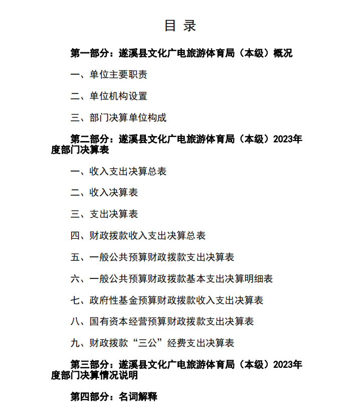 2023年遂溪縣文化廣電旅游體育局(本級)部門決算 | | 作者: | 來源:遂溪縣文化廣電旅游體育局 | 時間:2024-10-25 14:58:58 點擊數(shù):- 2023年遂溪縣文化廣電旅游體育局(本級)部門決算.pdf 【打印正文】