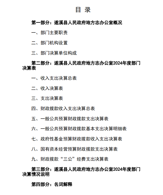 2024年度遂溪縣人民政府地方志辦公室部門決算 | | 作者: | 來(lái)源:遂溪縣人民政府地方志辦公室 | 時(shí)間:2025-09-16 15:47:06 點(diǎn)擊數(shù):- 2024年度遂溪縣人民政府地方志辦公室部門決算.pdf 【打印正文】