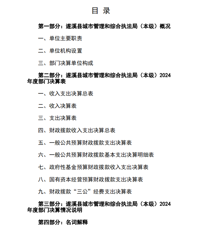 2024年度遂溪縣城市管理和綜合執(zhí)法局(本級)部門決算 | | 作者: | 來源:遂溪縣城市管理和綜合執(zhí)法局 | 時間:2025-09-17 10:24:19 點擊數(shù):- 2024年度遂溪縣城市管理和綜合執(zhí)法局(本級)部門決算.pdf 【打印正文】