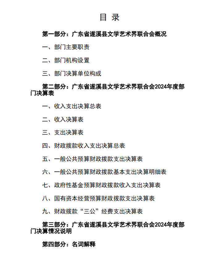 2024年度廣東省遂溪縣文學(xué)藝術(shù)界聯(lián)合會(huì)部門(mén)決算 | | 作者: | 來(lái)源:遂溪縣文學(xué)藝術(shù)界聯(lián)合會(huì) | 時(shí)間:2025-09-17 16:22:29 點(diǎn)擊數(shù):- 2024年度廣東省遂溪縣文學(xué)藝術(shù)界聯(lián)合會(huì)部門(mén)決算.pdf 【打印正文】