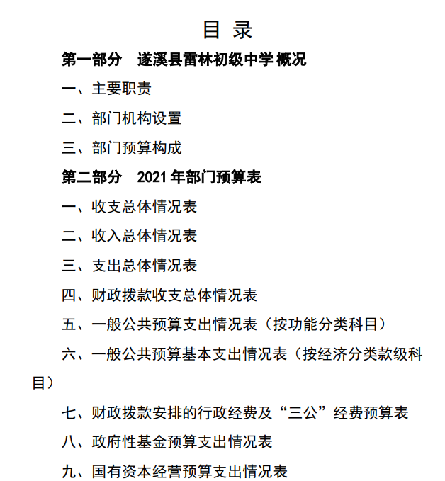 雷林初中2021年部門預算