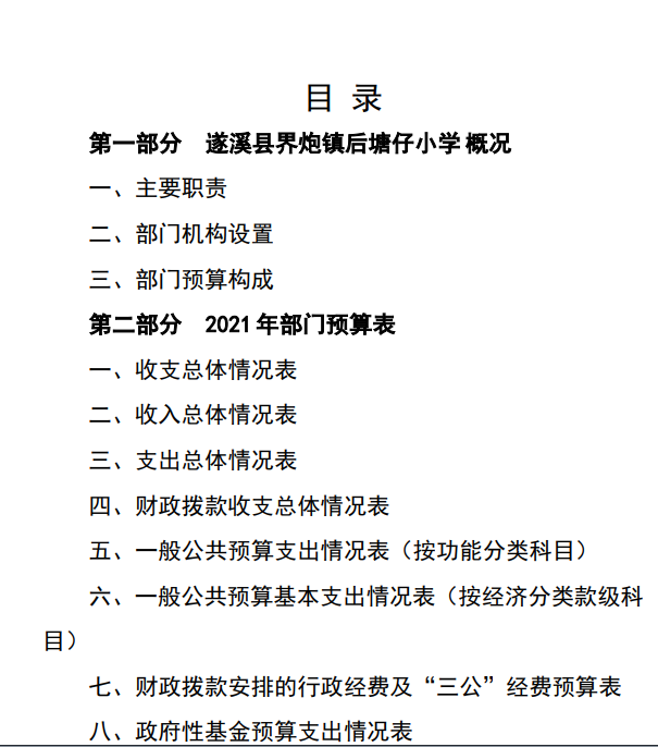 界炮鎮(zhèn)后塘仔小學(xué)2021年部門預(yù)算 | | 作者: | 來源:本網(wǎng) | 時(shí)間:2021-04-08 16:54:39 點(diǎn)擊數(shù):- 詳情請(qǐng)見附件:2021年遂溪縣界炮鎮(zhèn)后塘仔小學(xué)部門預(yù)算.pdf 【打印正文】
