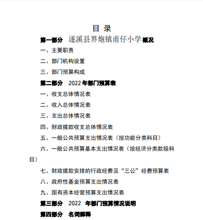 2022年遂溪縣界炮鎮(zhèn)甫仔小學(xué)部門預(yù)算 | | 作者: | 來源:本網(wǎng) | 時(shí)間:2022-05-05 15:23:50 點(diǎn)擊數(shù):- 詳情請(qǐng)見附件:2022年遂溪縣界炮鎮(zhèn)甫仔小學(xué)部門預(yù)算.pdf 【打印正文】