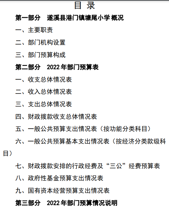 2022 年遂溪縣港門鎮(zhèn)塘尾小學(xué)部門預(yù)算 | | 作者: | 來(lái)源:縣財(cái)政局 | 時(shí)間:2022-05-07 19:21:41 點(diǎn)擊數(shù):- 詳情請(qǐng)見(jiàn)附件:2022年遂溪縣港門鎮(zhèn)塘尾小學(xué)部門預(yù)算.pdf 【打印正文】