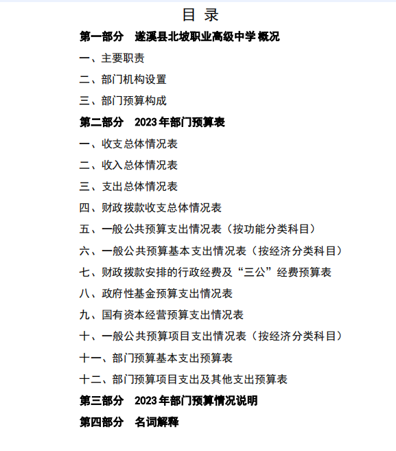 2023年遂溪縣北坡職業(yè)高級(jí)中學(xué)部門預(yù)算 | | 作者: | 來源:本網(wǎng) | 時(shí)間:2023-04-11 09:51:28 點(diǎn)擊數(shù):- 詳情請見附件:2023年遂溪縣北坡職業(yè)高級(jí)中學(xué)部門預(yù)算.pdf 【打印正文】