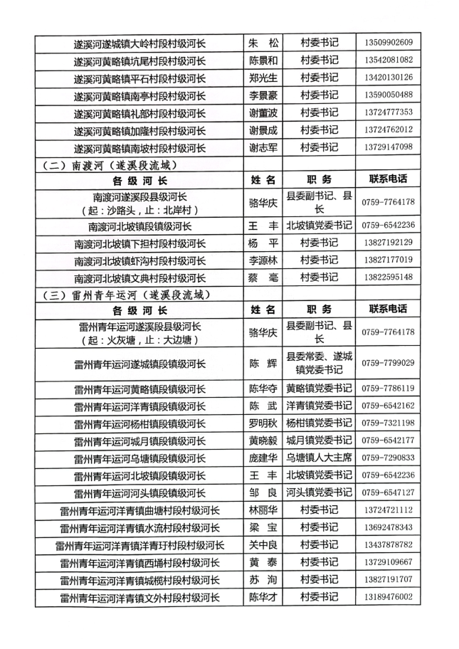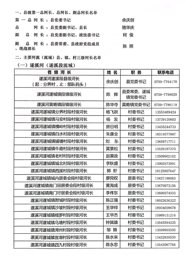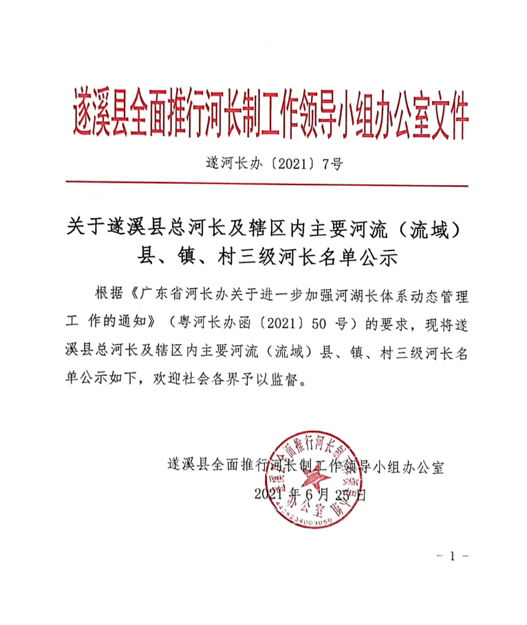 關(guān)于遂溪縣總河長(zhǎng)及轄區(qū)內(nèi)主要河流(流域)縣、鎮(zhèn)、村三級(jí)河長(zhǎng)名單公示