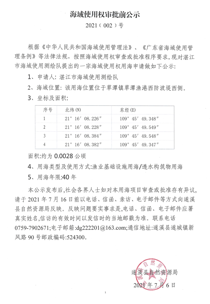 海域使用權(quán)審批前公示(草潭漁港氣象觀測站)