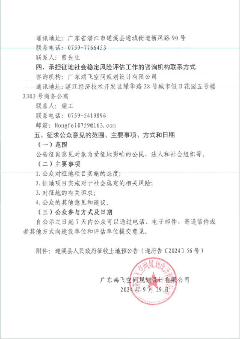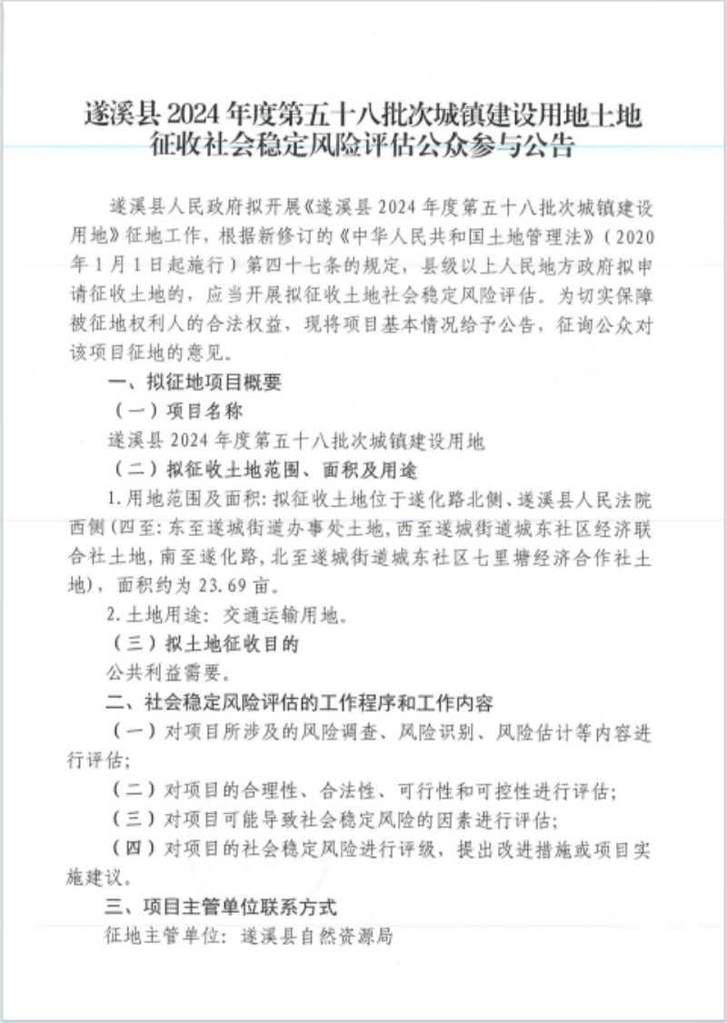 遂溪縣2024年度第五十八批次城鎮(zhèn)建設(shè)用地土地征收社會穩(wěn)定風(fēng)險評估公眾參與公告