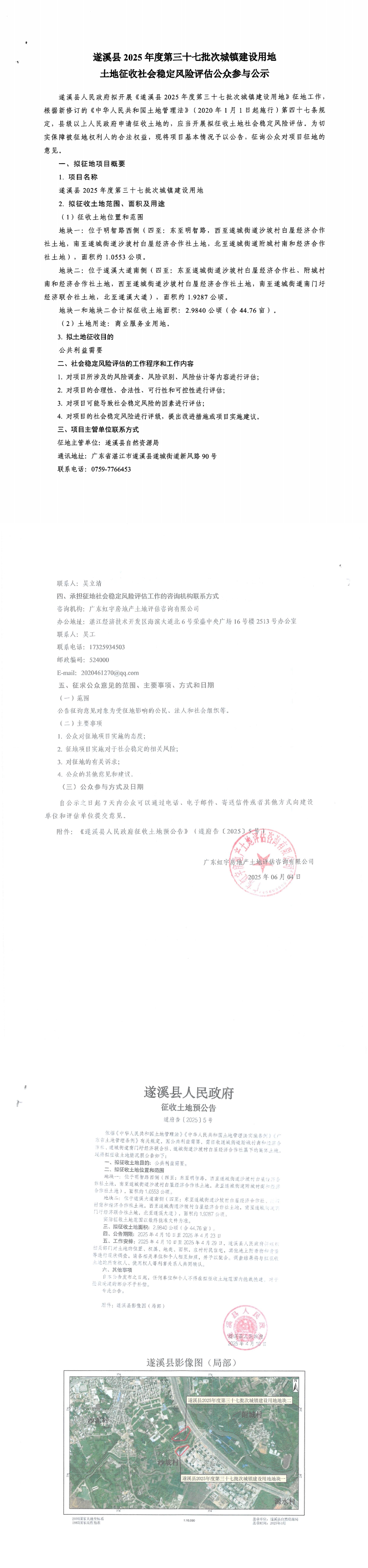 遂溪縣2025年度第三十七批次城鎮(zhèn)建設(shè)用地土地征收社會(huì)穩(wěn)定風(fēng)險(xiǎn)評(píng)估公眾參與公示