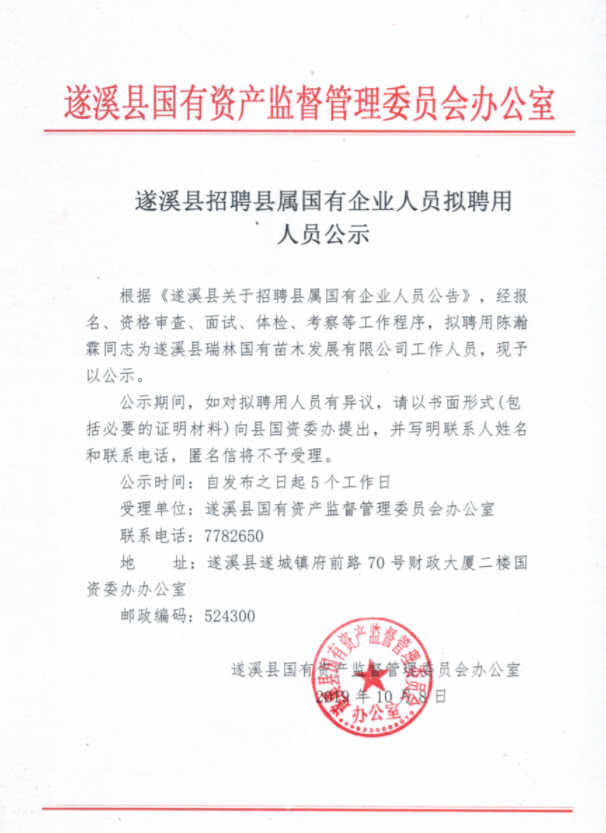 遂溪縣關(guān)于招聘縣屬國有企業(yè)人員擬聘用人員公示