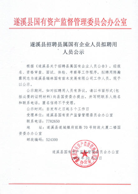 遂溪縣關(guān)于招聘縣屬國有企業(yè)人員擬聘用人員公示