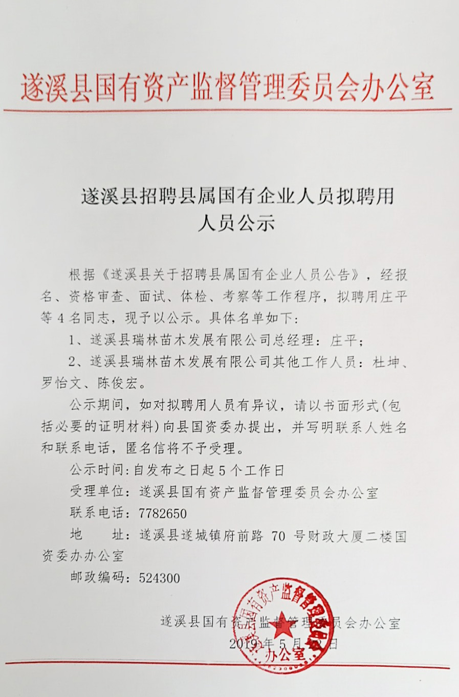 遂溪縣招聘縣屬國有企業(yè)人員擬聘用人員公示