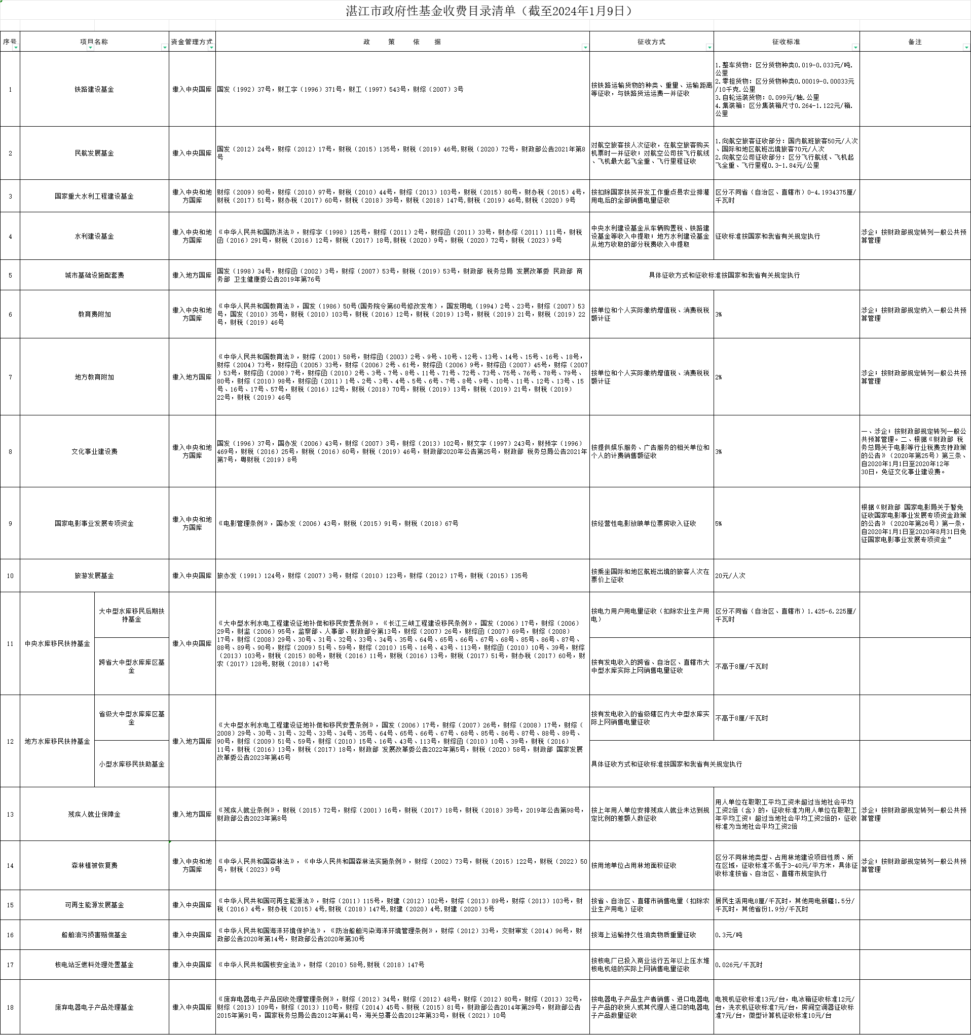 湛江市政府性基金收費(fèi)目錄清單((截至2024年1月9日) | | 作者: | 來源:本網(wǎng) | 時(shí)間:2024-01-15 15:15:18 點(diǎn)擊數(shù):- 詳情請見附件:湛江市政府性基金收費(fèi)目錄清單(截至2024年1月9日).xls 【打印正文】