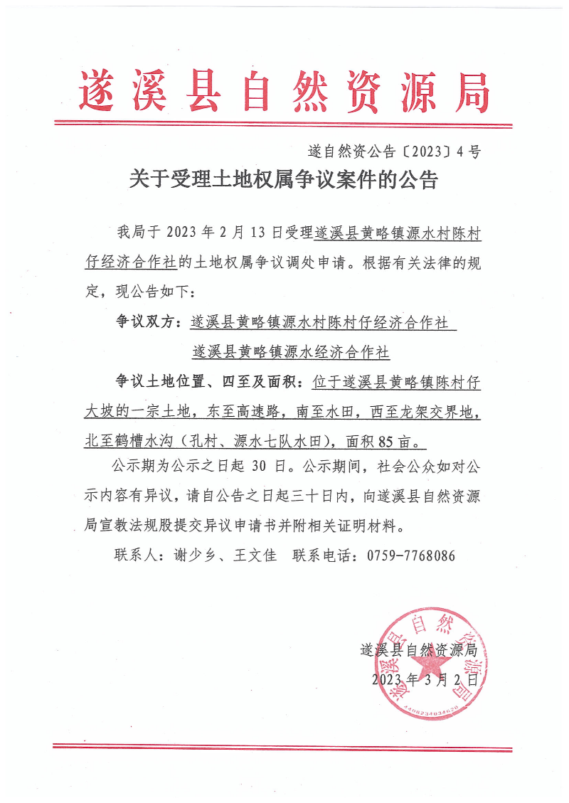 關(guān)于受理土地權(quán)屬爭議案件的公告