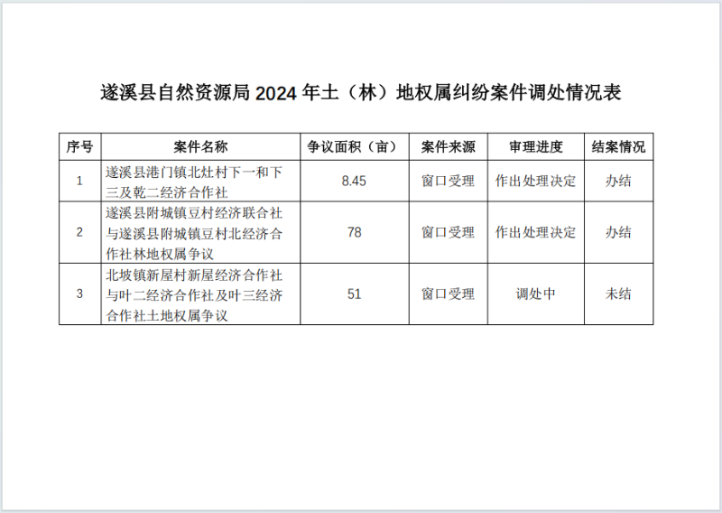 遂溪縣自然資源局2024年土(林)地權(quán)屬糾紛案件調(diào)處情況表