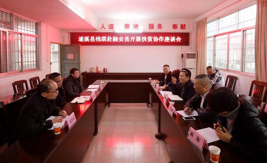 根據(jù)廣東省殘聯(lián)與廣西壯族自治區(qū)殘聯(lián)簽訂的幫扶協(xié)議內(nèi)容,3月1日遂溪縣殘聯(lián)理事長陳觀榮帶隊來到融安縣,與融安縣殘聯(lián)商討2019年粵桂(遂溪-融安)扶貧協(xié)作殘聯(lián)幫扶相關(guān)工作。