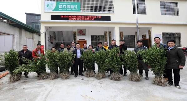 受贈(zèng)金桔苗貧困戶代表與深圳山湖海融安公司代表合影