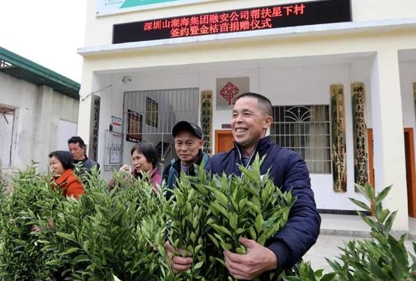 隨后,山湖海集團(tuán)公司捐贈(zèng)了價(jià)值約20000元的2700多株金桔苗。與會(huì)人員對(duì)星下村經(jīng)濟(jì)發(fā)展情況、脫貧攻堅(jiān)形勢(shì)以及下一階段工作思路進(jìn)行了深入探討。