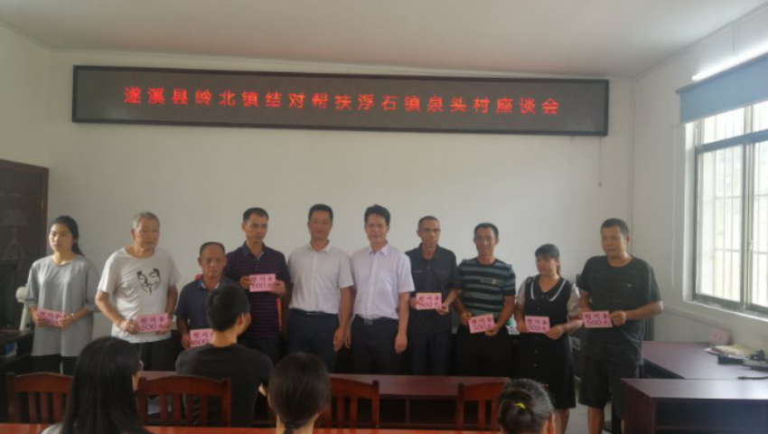 9月4日,遂溪縣嶺北鎮(zhèn)黨委書記王豐一行5人到融安縣浮石鎮(zhèn)開展結(jié)對(duì)幫扶活動(dòng),同時(shí)在嶺北鎮(zhèn)城里村結(jié)對(duì)幫扶村泉頭村會(huì)議室開展結(jié)對(duì)幫扶座談會(huì)暨捐贈(zèng)儀式。