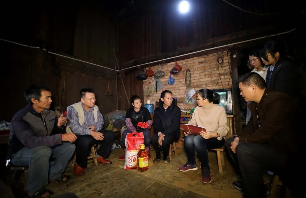 大山深處的夜晚靜悄悄,零零星星的微光彰顯幾戶人家的所在。劉喜一行走在山溝里,她一手持電筒,一手緊拽打狗棍,前往下一戶貧困戶進行夜訪。白天,人們出去勞作,只有晚上才回到家中,劉喜便趁這時間到貧困戶家中了解困難、宣傳政策。