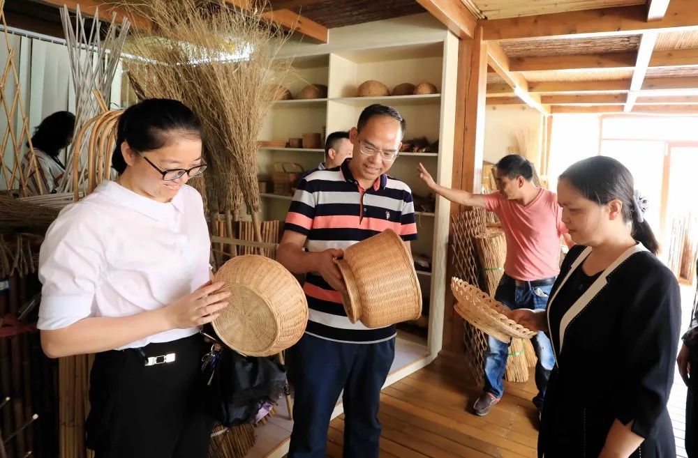 等領(lǐng)導(dǎo)在廣東省遂溪縣查看竹子制品。(譚凱興 攝)