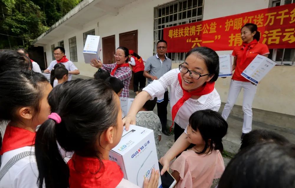 向?qū)W生贈送護眼燈 。(覃慶和 攝)