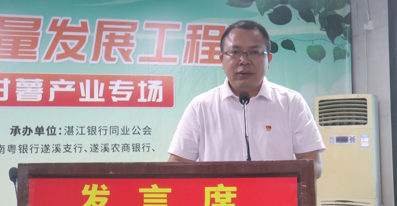 8月3日上午,由國(guó)家金融監(jiān)督管理總局湛江監(jiān)管分局和遂溪縣人民政府聯(lián)合主辦,遂溪縣農(nóng)業(yè)農(nóng)村局、北坡鎮(zhèn)人民政府協(xié)辦,湛江銀行同業(yè)公會(huì)承辦的湛江金融助力“百縣千鎮(zhèn)萬(wàn)村高質(zhì)量發(fā)展工程”——遂溪甘薯產(chǎn)業(yè)專場(chǎng)活動(dòng)在北坡鎮(zhèn)舉辦,合力推動(dòng)銀行保險(xiǎn)業(yè)與遂溪甘薯產(chǎn)業(yè)相關(guān)市場(chǎng)主體高效交流與合作,為甘薯產(chǎn)業(yè)高質(zhì)量發(fā)展注入金融“活水”。
