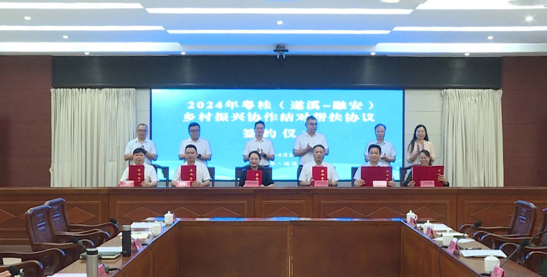 會上,遂溪、融安兩地學(xué)校、醫(yī)院、鎮(zhèn)(街)分別簽訂結(jié)對幫扶協(xié)議;遂溪縣人民政府和融安縣人民政府簽訂《2024年遂溪—融安粵桂協(xié)作年度協(xié)議》;遂溪縣委、融安縣委互贈紀(jì)念品。