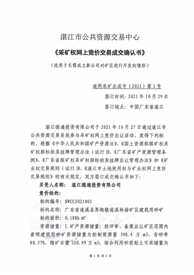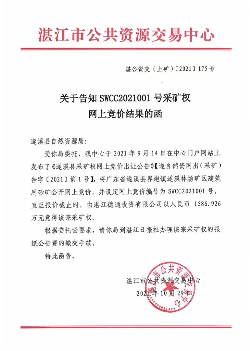 廣東省遂溪縣界炮鎮(zhèn)遂溪林場礦區(qū)采礦權(quán)招拍掛的公示