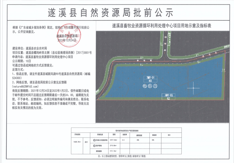 《遂溪縣畜牧業(yè)資源循環(huán)利用處理中心項目用地規(guī)劃》批前公示