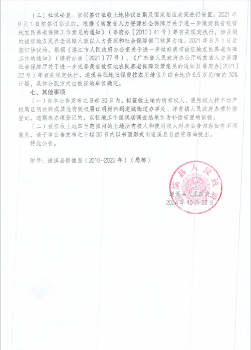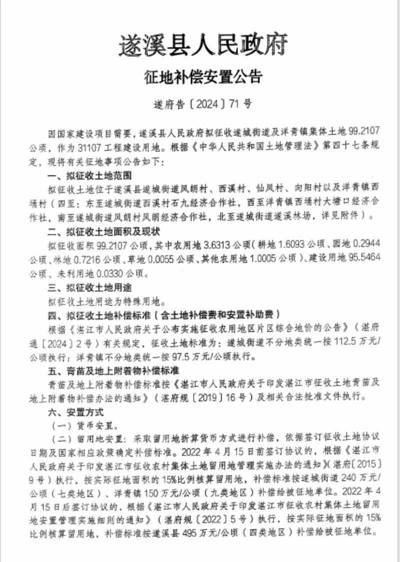 遂溪縣人民政府征地補(bǔ)償安置公告遂府告【2024】71號(hào)