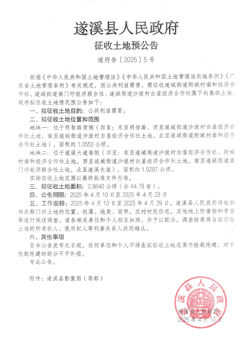 遂溪縣人民政府 征收土地預(yù)公告 遂府告〔2025〕5號