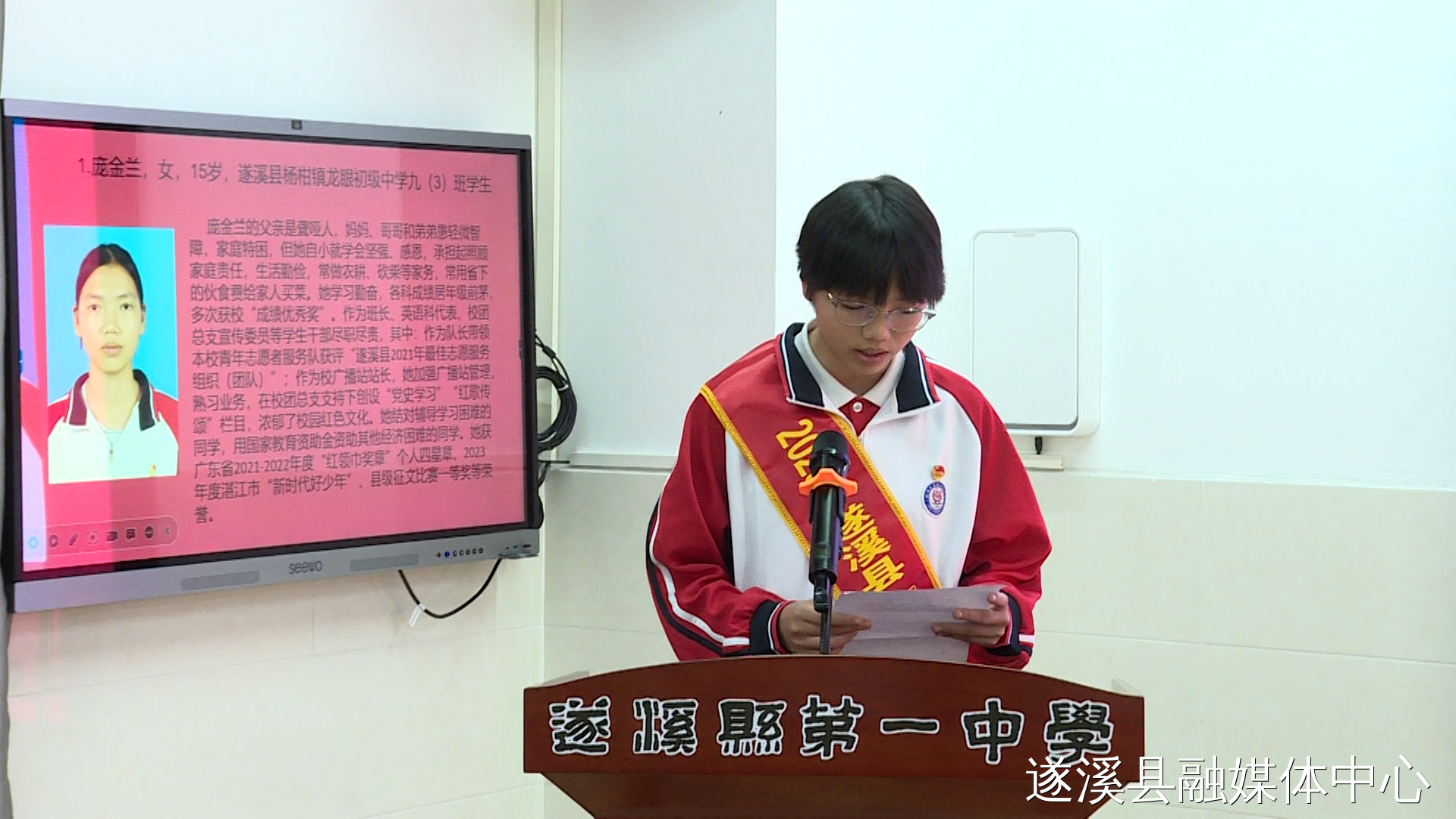 與會人員還觀看了2023年度遂溪縣“新時代好少年”龐金蘭個人事跡短視頻。