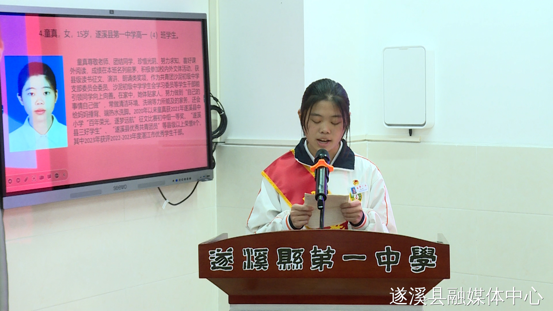 會議宣讀《關(guān)于2023年度遂溪縣“新時代好少年”評選情況的通報》。