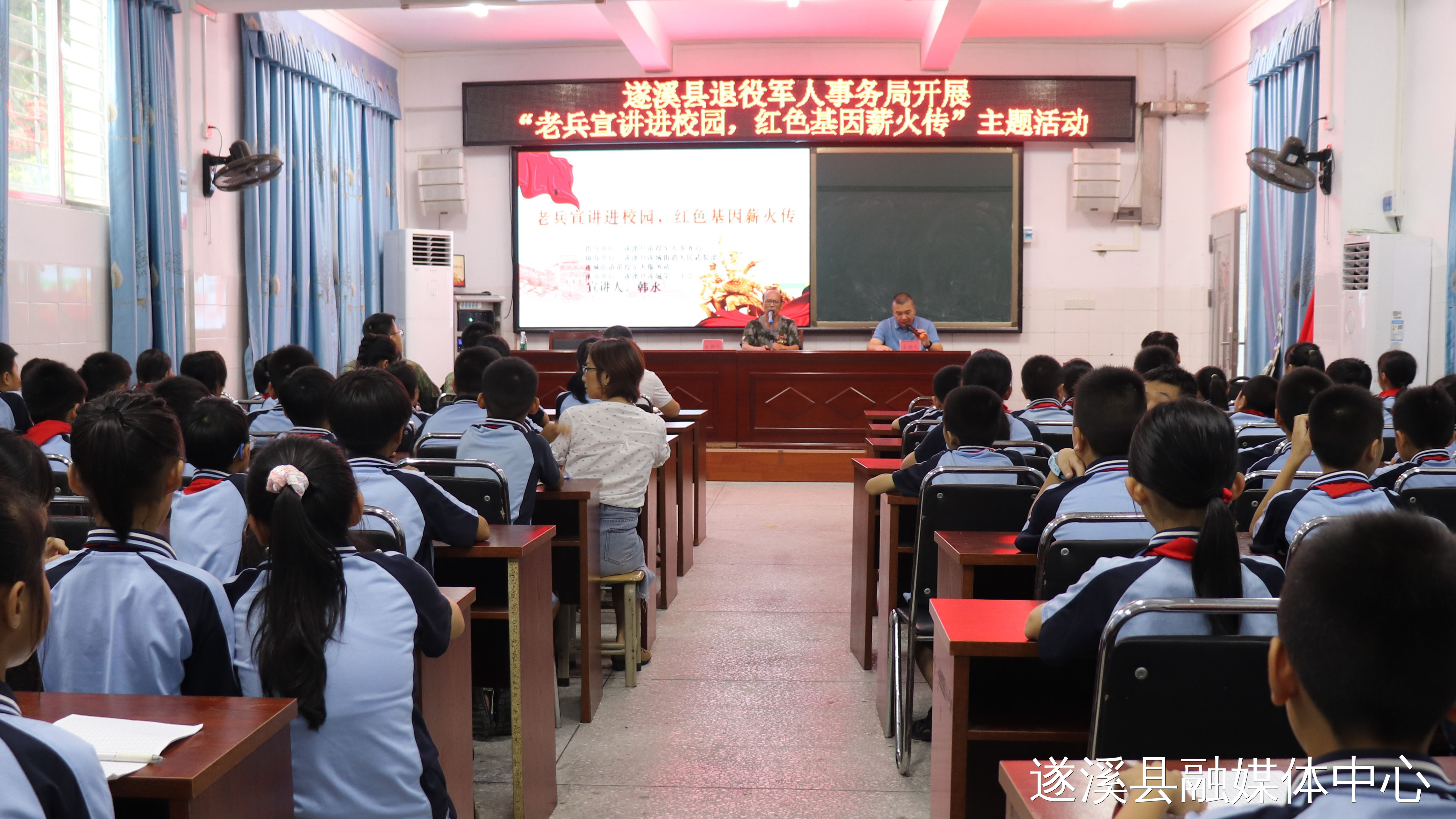 近年來(lái),遂溪縣大力加強(qiáng)退役軍人思想政治引領(lǐng),著力打造退役軍人宣講品牌——“老兵永遠(yuǎn)跟黨走宣講團(tuán)”。6月25日,遂溪縣退役軍人事務(wù)局聯(lián)合遂城第三小學(xué)開(kāi)展“老兵宣講進(jìn)校園 紅色基因薪火傳”主題活動(dòng),遂城街道人武部、遂城街道退役軍人服務(wù)站協(xié)辦,現(xiàn)場(chǎng)師生約110人參加了活動(dòng)。