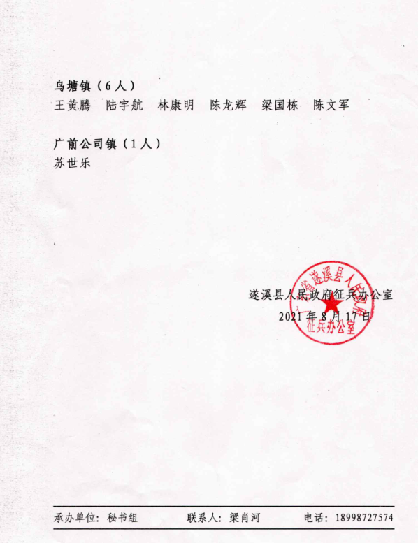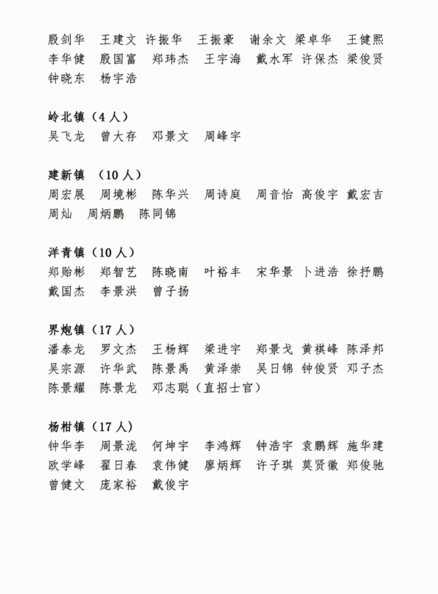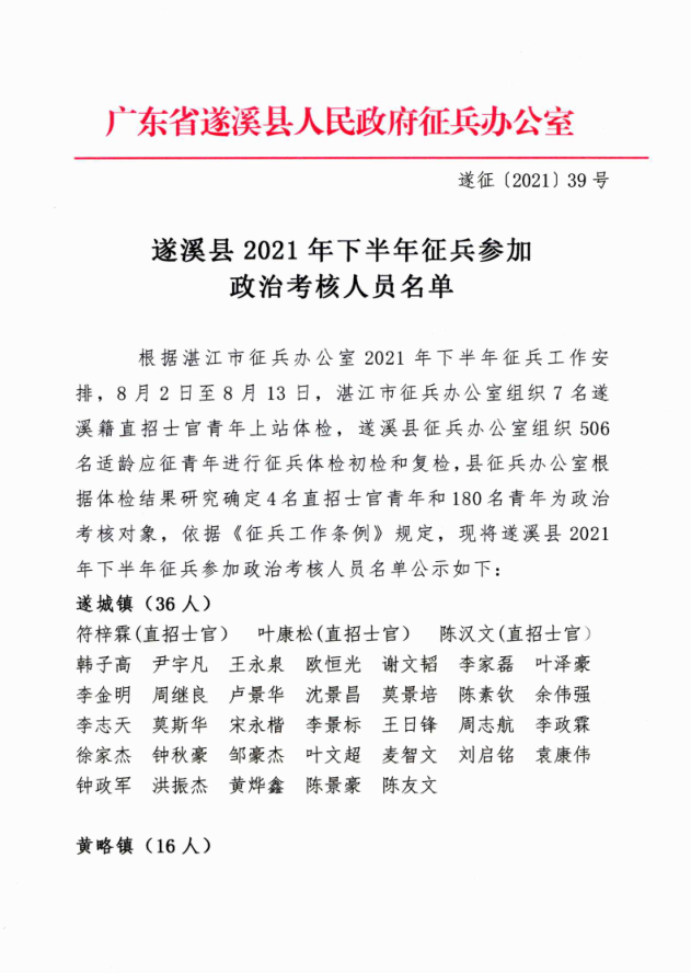 遂溪縣2021年下半年征兵參加政治考核人員名單