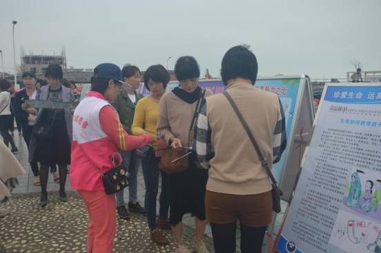 (志愿者向群眾發(fā)放宣傳資料)