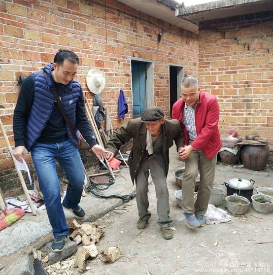 禮部村敬老院的五保戶謝奢(91歲),是鄧校長一對一的幫扶對象,他開心俏皮像個頑童,逗得大家開懷大笑,執(zhí)意要帶大家出門口看他的劈柴技術。