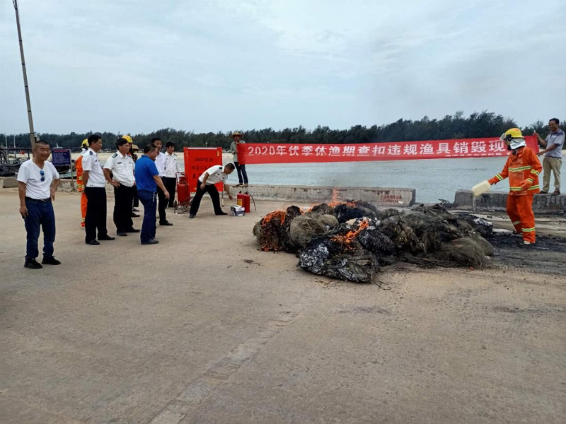 2020年伏季休漁期遂溪縣農(nóng)業(yè)農(nóng)村局漁業(yè)安全生產(chǎn)應急演練暨查扣違規(guī)銷漁具銷毀現(xiàn)場會