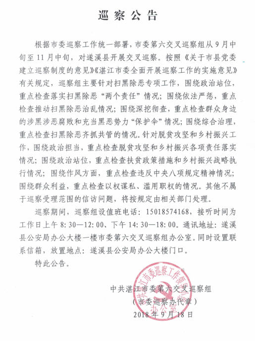 作者:中共湛江市第六交叉巡查組 | 來源:中共湛江市第六交叉巡查組 | 時間:2018-09-20 09:34:38