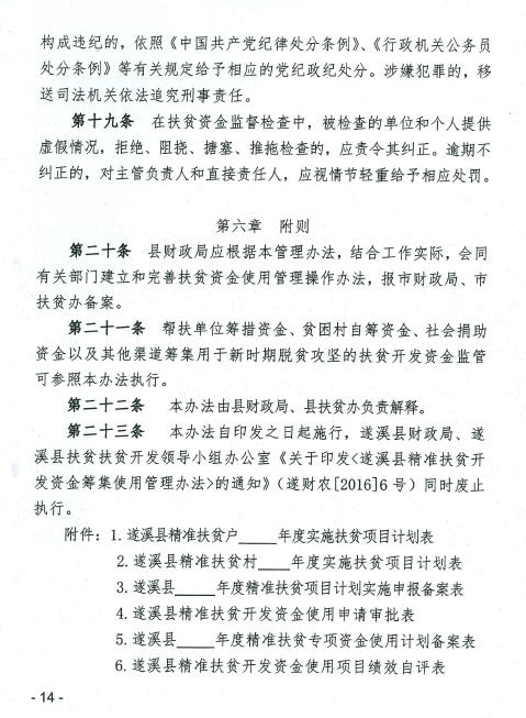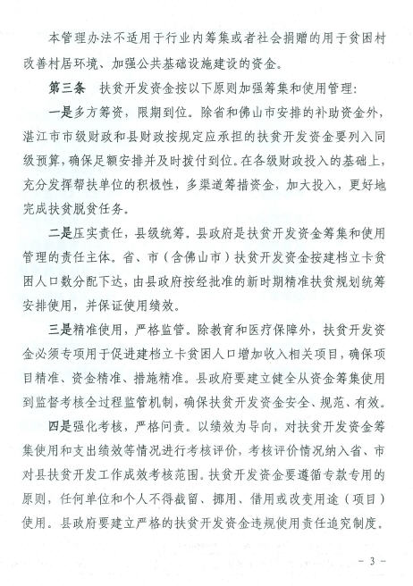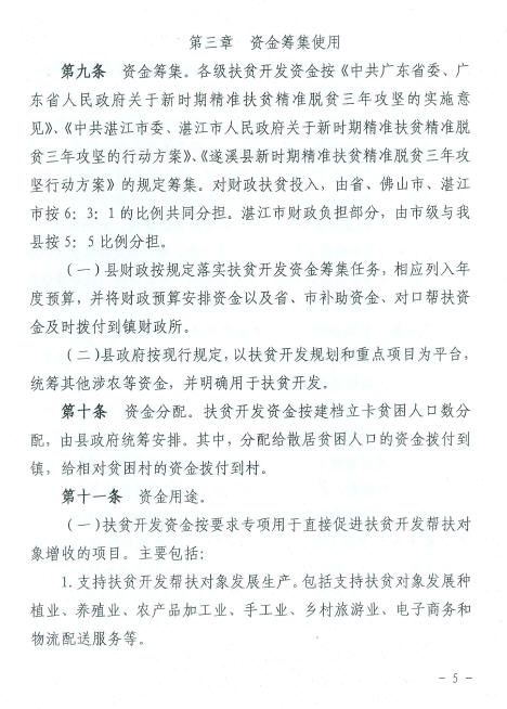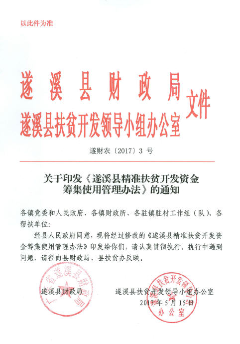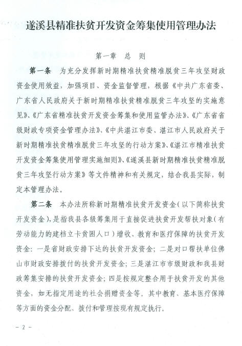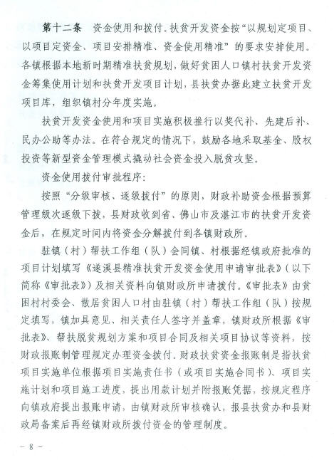 關(guān)于印發(fā)《遂溪縣精準(zhǔn)扶貧開(kāi)發(fā)資金籌集使用管理辦法》的通知 | | 作者:縣扶貧開(kāi)分領(lǐng)導(dǎo)小組 | 來(lái)源:縣扶貧開(kāi)分領(lǐng)導(dǎo)小組 | 時(shí)間:2017-05-20 11:55:35 點(diǎn)擊數(shù):- 關(guān)于印發(fā)《遂溪縣精準(zhǔn)扶貧開(kāi)發(fā)資金籌集使用管理辦法》的通知.pdf 【打印正文】