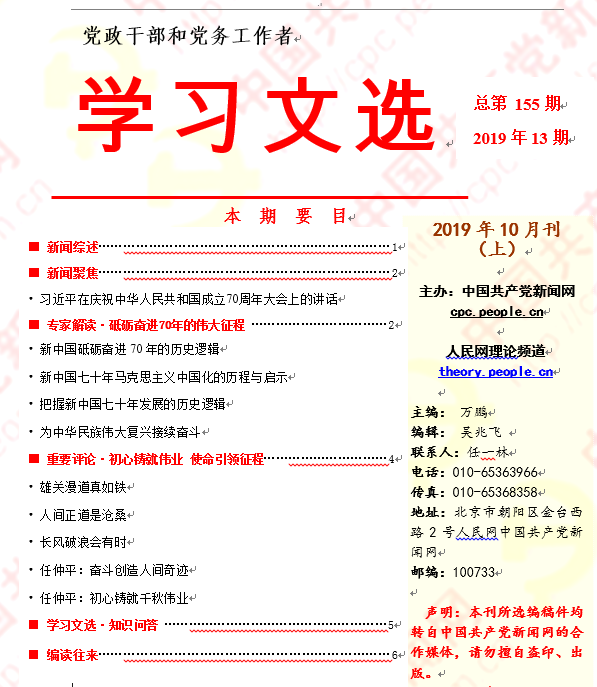 溫馨提示:為滿足廣大網(wǎng)友學(xué)習(xí)需要,《學(xué)習(xí)文選》為網(wǎng)友提供Word版本(PC閱讀)和PDF版本(手機(jī)閱讀)兩個(gè)版本。PC端用戶請(qǐng)點(diǎn)擊上方圖片下載Word版,手機(jī)端用戶請(qǐng)點(diǎn)擊文末圖片下載PDF版。