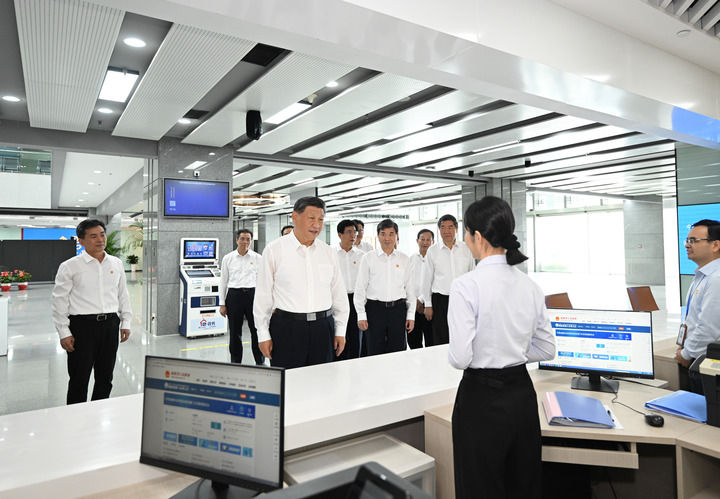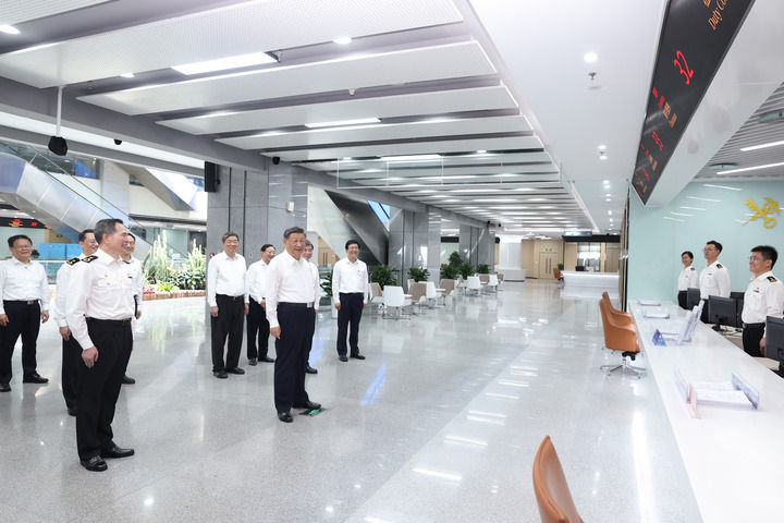 10月15日至16日,中共中央總書記、國家主席、中央軍委主席習(xí)近平在福建考察。這是16日上午,習(xí)近平在中國(福建)自由貿(mào)易試驗區(qū)廈門片區(qū)考察時,同綜合服務(wù)大廳窗口工作人員親切交流。新華社記者 燕雁 攝