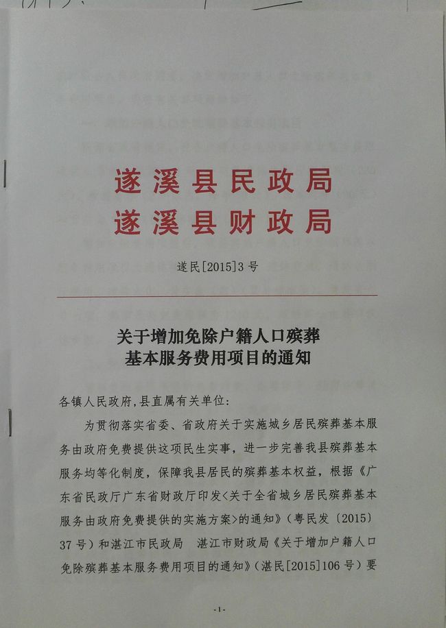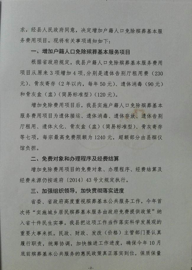 關(guān)于增加免除戶籍人口殯葬基本服務(wù)費(fèi)用項(xiàng)目的通知
