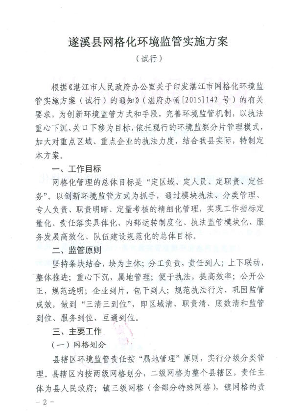 遂溪縣網(wǎng)格化環(huán)境監(jiān)管實(shí)施方案(試行)