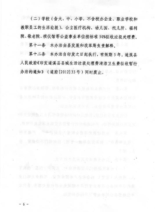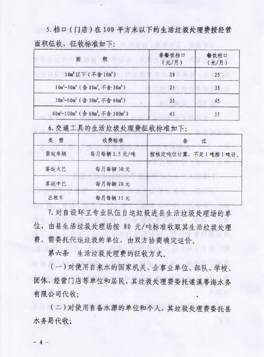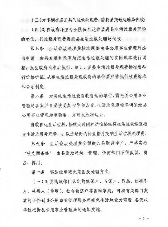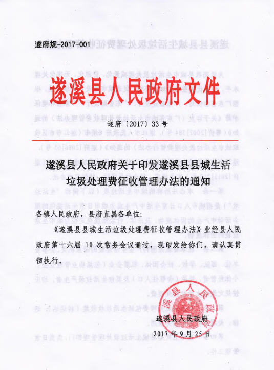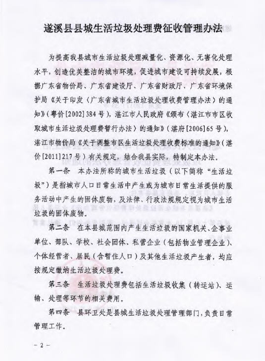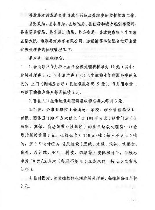 遂溪縣人民政府關(guān)于印發(fā)遂溪縣城生活垃圾處理費(fèi)征收管理辦法的通知